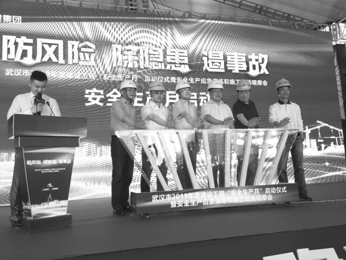 5月31日,由武汉市城乡建设局主办,武汉市航发集团、黄陂区建设局协办的以“防风险、除隐患、遏事故”为主题的“武汉市2019年建设工程安全月”启动仪式暨安全文明施工观摩会在武汉航发金融创新基地工程项目部举行。