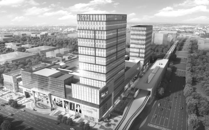 本项目位于奉贤区南桥镇,地铁5号线南延伸段的奉浦站位于本地块内。项目总用地面积为51879平方米,总建筑面积约26.5万平方米。其中,1号楼购物中心及商业街及地上共5层,房屋高度28米;1号楼办公楼地上共22层,房屋高度为99.95米。2-8号楼为商业街,地上5层,房屋高度23.95米。9号楼包含办公楼和商业街,地上共18层,房屋高度80米;10号楼为公交首末站,地上2层,屋顶为P+R停车场,房屋高度14.15米;地下室为二层。
