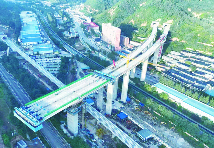 9月9日,由中国能建投资建设、中铁七局承建的延安东绕城高速公路南泥湾机场大桥完成54.5米高空平稳上位转体。重达2.5万吨的T型刚构桥体成功旋转77.49度,实现毫米级精准对接,一举创造“世界最高、吨位最重、跨度最大”上位转体设计桥梁工程世界纪录。