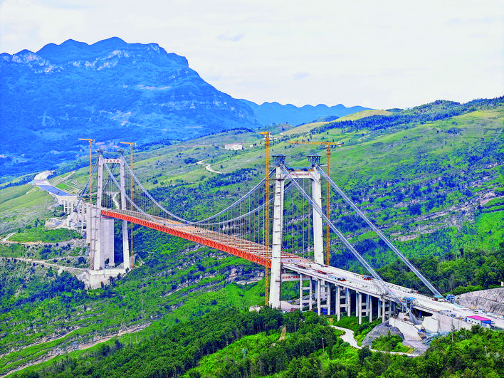 本报讯(通讯员 赵宝龙 张纪林 王祥 李守钦)9月23日,由贵州交投集团有限公司投资建设、中铁广州工程局集团承建的安盘高速天门特大桥合龙。这座横跨北盘江的超级工程,桥面距江面高度560米、全长1553米、主跨820米,建成后将成为峡谷地区世界第三高桥及全球最高双向六车道钢桁梁悬索桥。