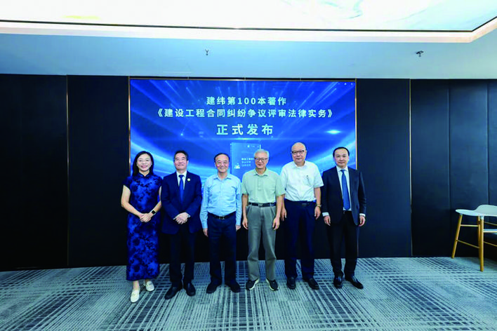 会上,中国国际贸易促进委员会建设行业分会会长李礼平,中国政法大学教授、博士生导师曹义孙,天津理工大学教授、博士生导师尹贻林,法律出版社有限公司法商分社分社长薛晗,建纬研究院(香港)有限公司院长朱树英,邵万权等嘉宾共同为新书揭幕。