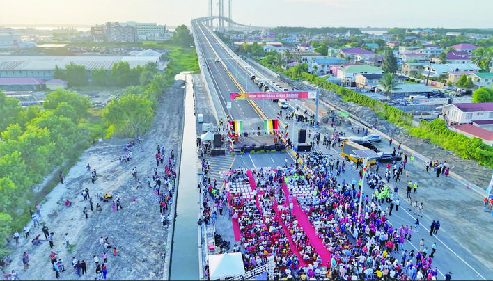 当地时间10月5日,由中国铁建国际集团有限公司承建的圭亚那巴拉特·贾格迪奥-德梅拉拉河大桥正式通车。圭亚那总统阿里、总理菲利普斯、副总统贾格迪奥,中国驻圭亚那大使杨扬等两国政要及社会各界代表上万人参加了通车仪式。