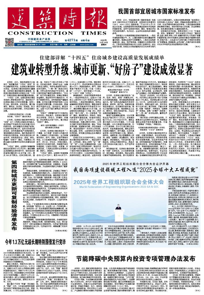 建筑产业规模屡创新高,2024年建筑业总产值达到32.7万亿元,实现增加值9万亿元;2021年至2024年,建筑业累计完成154亿平方米建筑、7.9万公里市政道路、3429公里城市轨道交通、约1.6万公里铁路、约29万公里公路以及各类水利、机场等基础设施。建筑业现代化程度大幅提升,深中通道、北京冬奥场馆等一批世界级重大工程,盾构机、架桥机、造楼机等一批大国重器投入使用;新型“造楼机”更加集成化、更加轻量化、更加智能化,可自动纠偏、智能监控,实现全天候封闭作业,具备多工序立体流水化施工能力,处于世界领先水平。