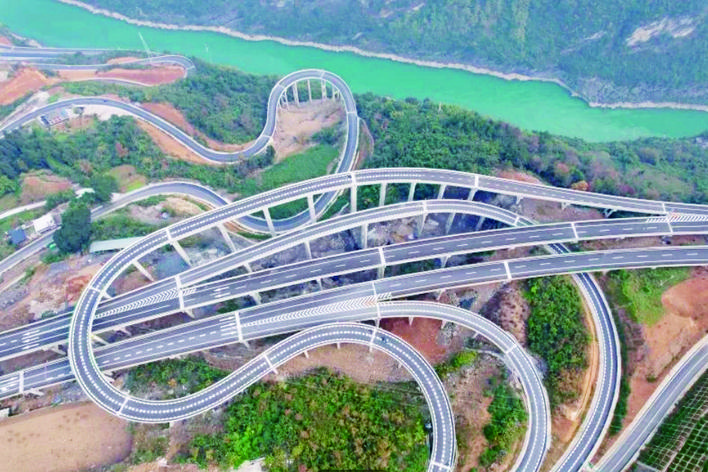 渝湘复线还创下多个亚洲第一。位于巴南区东泉镇朝阳村的芦沟河特大桥是亚洲第一连续刚构组合桥;位于彭水绍庆街道平原村附近的磨寨乌江特大桥,为亚洲第一高墩矮塔斜拉桥。(童宇)