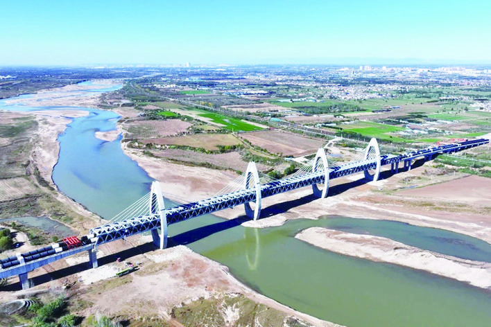 引汉济渭二期工程是国家“十四五”期间重点推进的150项重大水利工程之一,由黄池沟配水枢纽、南干线工程和北干线工程三部分组成,线路全长190公里。其中,中铁十八局承建的渭河管桥全长1.23公里,是全线最大单体工程和控制性工程,也是国内水利领域首座四塔五跨钢桁梁斜拉结构的特大桥。