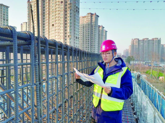2024年,孙新杰再次迎来职场新突破,晋升为唐山路项目的项目负责人。相比于浮岛公园项目的人行天桥,正在建设中的唐山路项目是车行高架桥设计等级,安全系数、施工精度的要求都更高。面对下穿高压线、上跨主干道的复杂工况,他再次带领团队协调推进“过路段钢箱梁+钢护栏整体吊装”工法,向着新的技术高地发起冲锋,力求在保障安全的同时,最大限度减少对交通的影响。