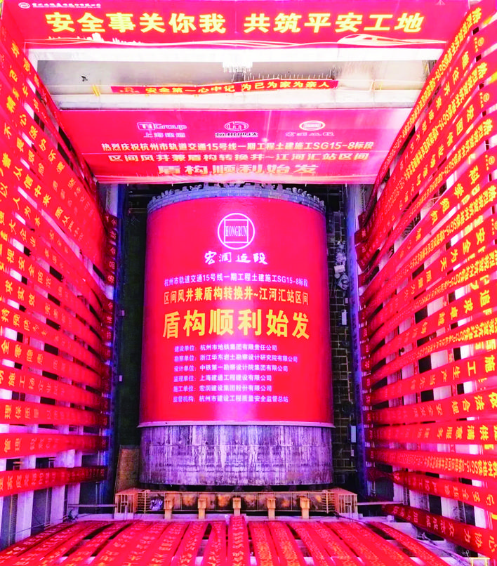 近日,宏润建设集团杭州轨道交通15号线一期工程SG15-8标段“科创号”过江大盾构顺利始发,标志着该工程建设进入多点推进、集中攻坚的关键阶段。