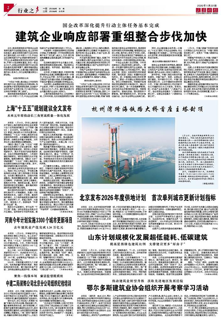 《建议》提出了上海“十五五”时期经济社会发展的六方面主要目标:高质量发展取得显著成效,城市核心功能实现新跃升,高水平改革开放取得新突破,社会文明程度明显提升,人民城市建设持续深化,城市治理现代化水平显著提高。值得注意的是,《建议》分多个领域部署了“十五五”时期上海经济社会发展的战略任务和重大举措。其中,建设领域相关重点内容包括: