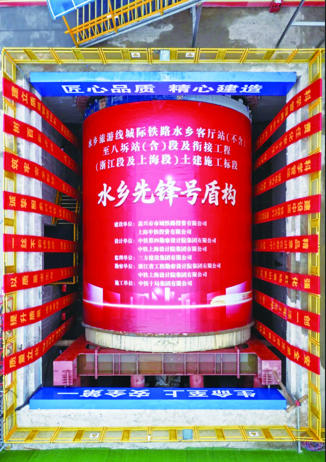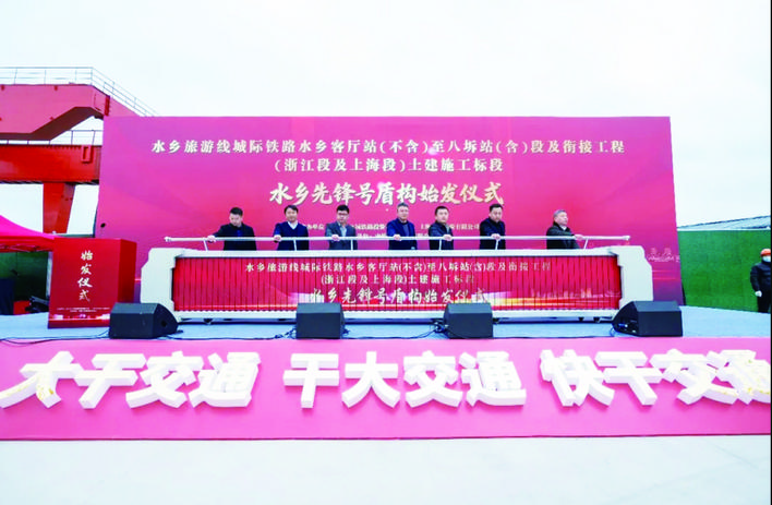 当天,在施工现场,随着指令下达,盾构机刀盘徐徐转动,沪苏嘉城际铁路省界段首台盾构机“水乡先锋号”正式始发,开启“地下之旅”。