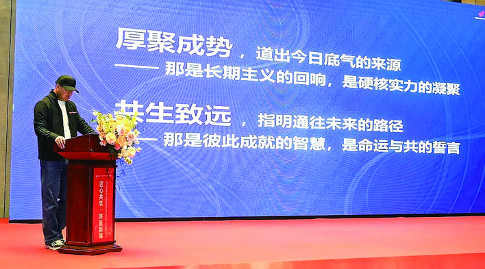 而这种共生关系,可以根据合作的深度,分为三个不断递进的阶段,即:利益共同体、事业共同体、命运共同体。而最终极、也最珍贵的阶段,是我心中最期待的命运共同体。这是合作的最高境界,也是最难达成的目标。在这个阶段,我们将真正融为一体,共享的不仅是彼此的发展红利,更是未来的生态版图——这份生态圈,既包含集团自身构建的全链条发展生态,也涵盖整个高定家居行业欣欣向荣的产业生态。我们将深度嵌入彼此的发展脉络,与行业趋势同频共振,真正实现荣辱与共、共生共荣。