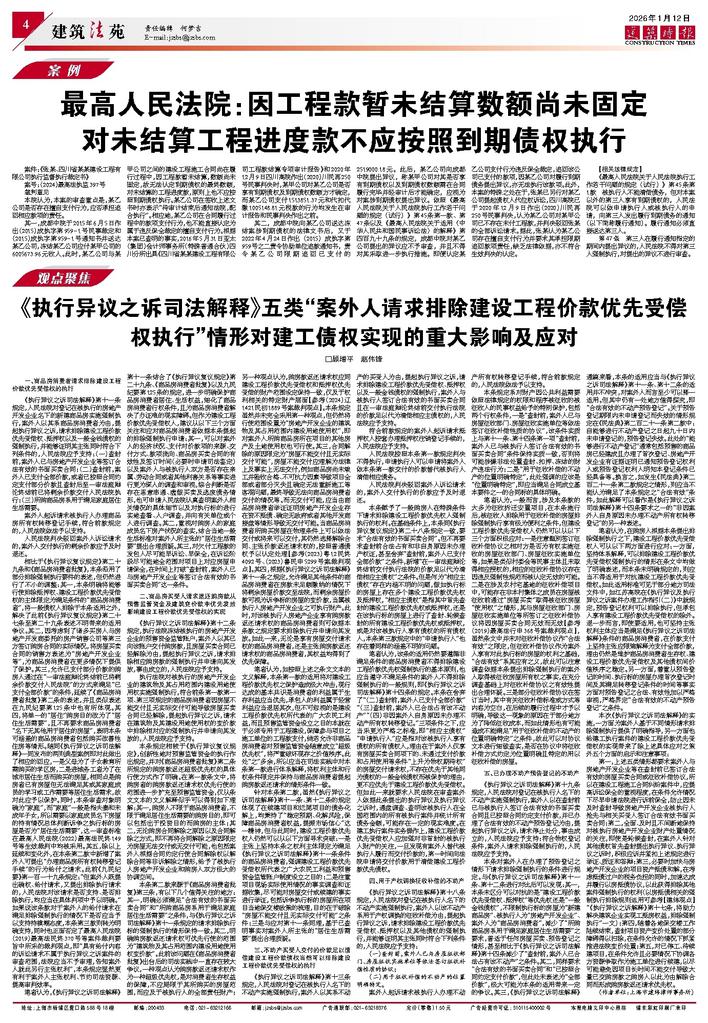 最高人民法院:因工程款暂未结算数额尚未固定 对未结算工程进度款不应按照到期债权执行